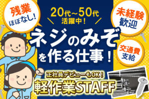 ネジにミゾを作る♪未経験も安心のモクモク軽作業*年齢不問