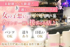 パンツOKの少人数制スナックで気軽なカウンターレディ