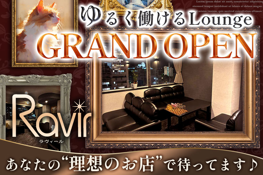 姫路に11月上旬に新規GRAND OPEN予定のラウンジ「Ravir -ラヴィール-」でオープニングスタッフを大募集♪ママはすごく気さくでめっちゃゆる~い♪だけど『働きやすいお店作り』には妥協なし★ スタッフ全員が安心して過ごせる環境でお迎えします!未経験のコも当店なら初日から不安なし♪月1日~OKで自由度MAX!