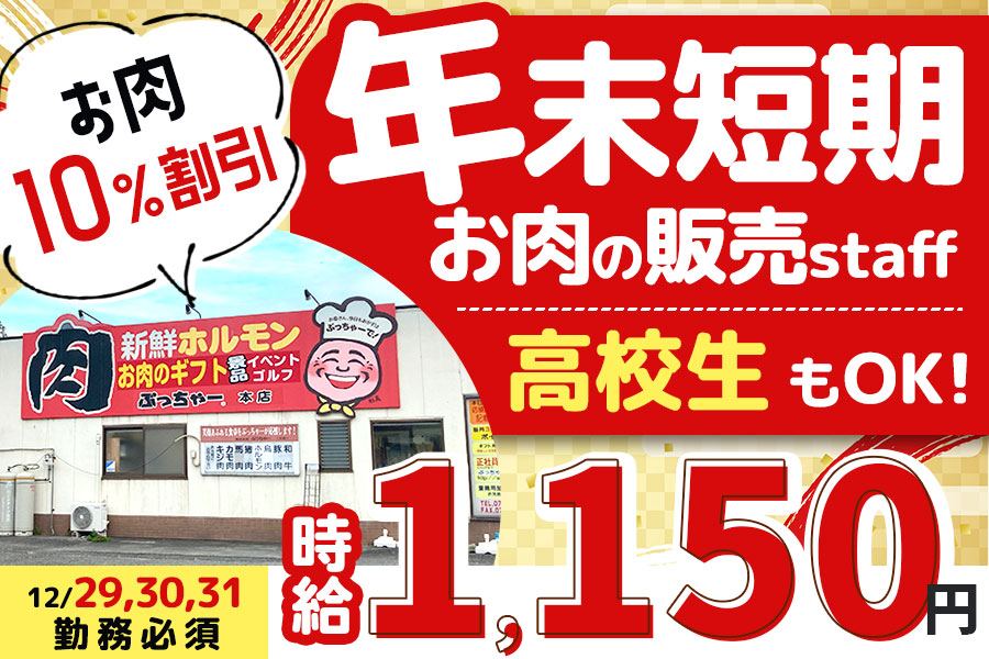 | 募集職種 | 12/27~31までの5日間限定でお肉の販売スタッフ |