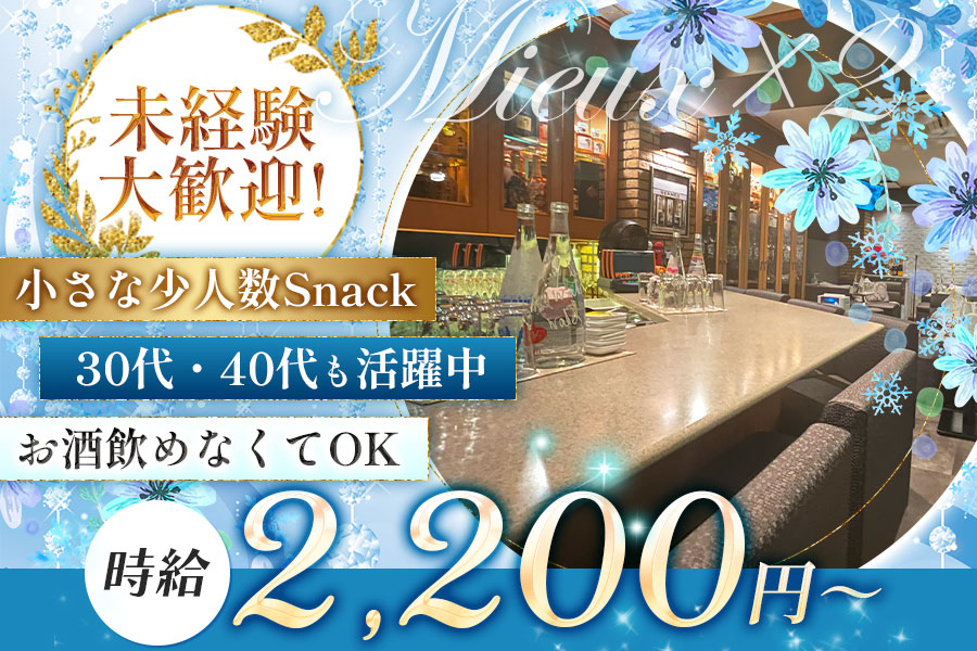 神戸にあるスナック『Mieux×2-ミューミュー-』でカウンターレディ募集♪気さくで優しいママが創る落ち着いたお店”Mieux×2”☆ノルマ/罰金なし!優良店で、未経験さんも安心して勤務できます♪Wワーク活躍中♪働きやすいようにシフトの融通バツグン!自分のペースで勤務OK♪お酒が苦手な方も安心!ソフトドリンクでの勤務もOKです♪