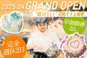 昨年春OPENした三宮のオシャレなケーキ屋「sweets&cafe Rivera -リベラ-」でパティシエ募集!! ブランクOK◎正社員デビューも大歓迎★世界に1つのオーダーケーキを作るお仕事!「最初はレジだけ…」なんてことはありません◎マジパンやデコレーションなど、ケーキ作りをしっかり学べる環境です!早朝勤務なし♪髪色・ネイル・ピアスOK♪