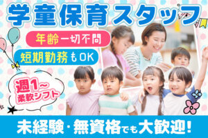 | 給与 | 【学童保育スタッフ】 時給1,200円~ ※処遇改善手当含む ■昇給あり ■処遇改善手当 ■残業手当 ■社会保険各種完備 ■扶養内勤務OK |