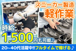 姫路にある『塩谷工業株式会社』で軽作業STAFF募集☆【未経験者大歓迎!!】誰もが知る有名スニーカー製造工場のレア求人♪製造されたスニーカーの靴ひも結び、箱へ梱包するお仕事です!慣れてきたら靴の製造も◎各種豊富な手当あり!マイカー通勤OK♪正社員登用あり!ぜひお気軽にご応募ください☆彡