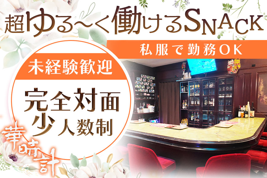 神戸にあるスナック『華時計』でカウンターレディ募集♪ママと女の子3名で毎日のんびり営業中♪短期もOKで好きな時に好きなだけ働けます◎罰金やノルマ、連絡先交換は一切なしだから誰もが安心♪お仕事はただお店で楽しく過ごすだけ☆ナイトデビューにピッタリ♪