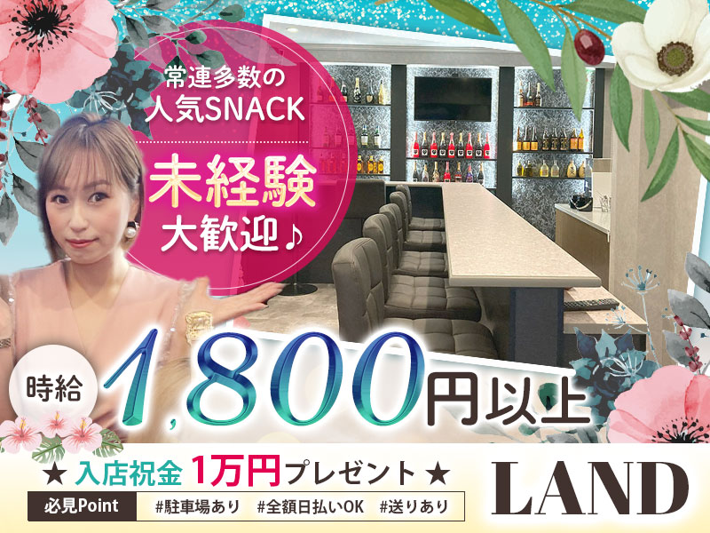 姫路の飾磨駅近くにあるスナック『LAND -ランド-』でカウンターレディを大募集★《チーママ候補も募集中♪》この春卒業のメンバーが多いため…STAFF入れ替えのリニューアル大募集★繁華街のお店と違い『気軽なローカル店』だから、ノルマや営業強制なんてありえません!カウンター越し接客で安心◎女性STAFF専用トイレあり★