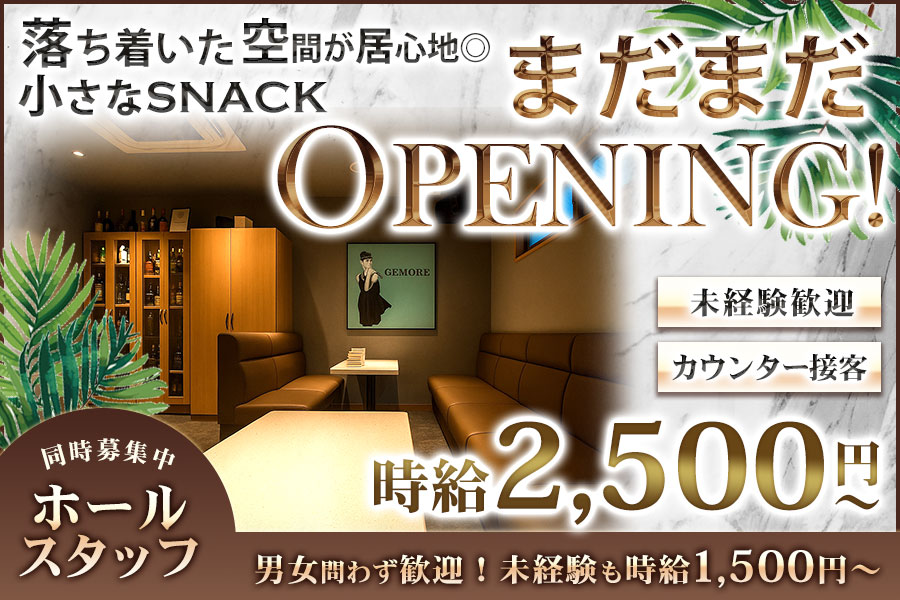 \まだまだオープニング♪これからもっと素敵なお店へ/三宮のスナック『GEMORE~ジェモア~』でカウンターレディ大募集!まだまだお店作り中ですが、安心客層で居心地バツグン☆気軽なスナックだから厳しいルールは一切なし!「夜の仕事は初めて」「騒がしいのは苦手」と言う方にもピッタリ♪オープニングメンバーの追加募集です◎