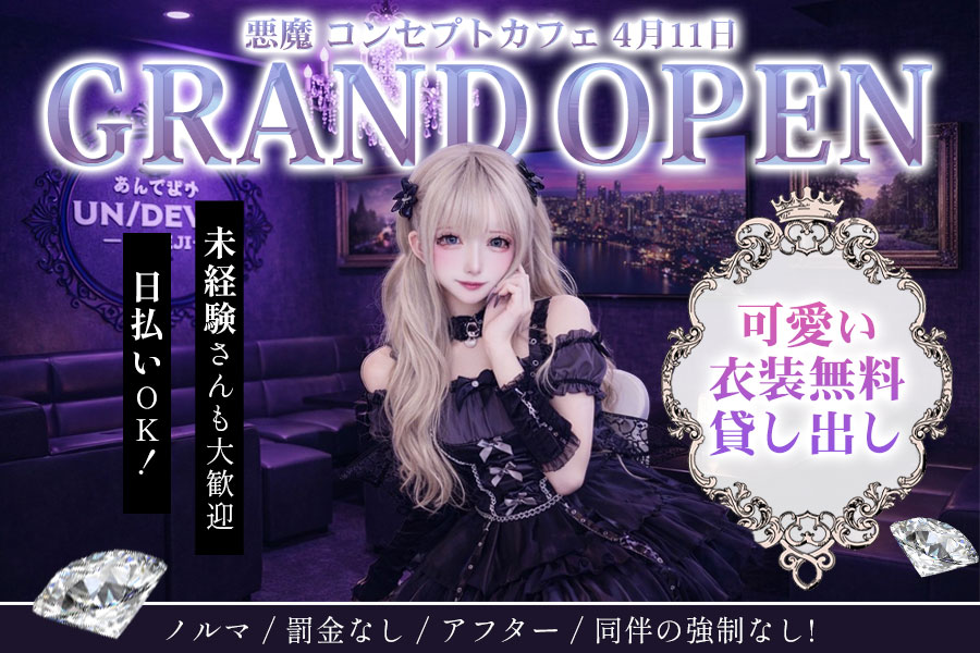 4月11日、姫路にGRANDOPEN♪コンセプトカフェ『UN/DEVIL-あんでびる-』でカウンターレディ募集♪映える可愛い店内で、可愛い衣装を着て働けます*今いるスタッフはなんと店長のみ!今だけみんな同じスタート♪未経験さんも大歓迎!経験やスキルがなくても、しっかりしたノウハウがあるので安心してください★日払いOK/週1日~OK♪