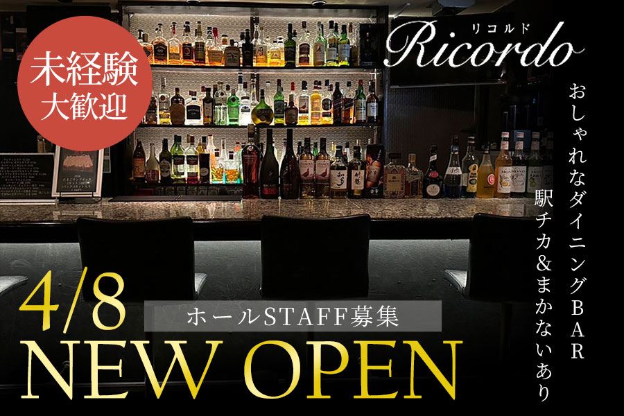 4月8日に明石でOPENするダイニングBAR『Ricordo(リコルド)』でホールスタッフ募集♪オープニングだからみんな同じスタート◎未経験の方も大歓迎!「ちゃんとできるかな…」という不安も気にしなくて大丈夫です◎ネイル・ピアスもそのままでOKなので、オシャレも楽しみながら働けます♪駅チカ&まかないあり◎「ちょっと気になる」くらいの気持ちでOK!ぜひお気軽にご応募ください!