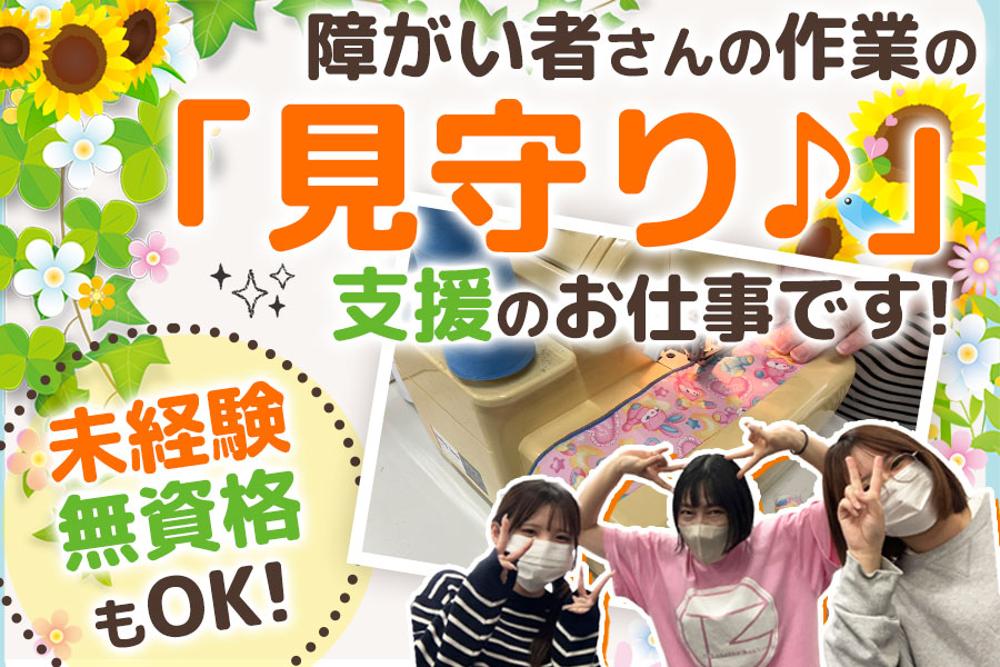 | 仕事内容 | 障がいをもつ利用者さんが 安心して活動できるように 『見守り』&『サポート』するお仕事です♪ 当事業所では、身体・知的・精神に軽度の障害を持つ方が 内職のようなカンタンな軽作業をしています◎ ほとんどの利用者さんが慣れているので つきっきりで指導する必要はありません♪ 「少し困っていそうだな」と感じたら 「やさしく声をかけてフォローする」 というイメージでOK♪ バタバタと動き回ることもなく 落ち着いた環境で働けますよ◎ また、自立されている方ばかりなので 身体介護のような力仕事も一切なし◎ 未経験の方も安心して働けるお仕事です! 製品の検品や納品作業など 付随業務もお願いします! |
