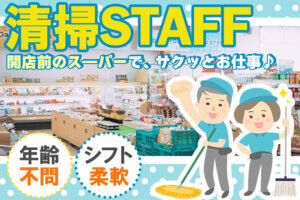 姫路にある「業務スーパー広畑西蒲田店」で開店前の清掃スタッフを大募集!いつもより少しだけ早起きして、生活費+αのお小遣い稼ぎ♪年齢不問!未経験さんも大歓迎です!家事の延長で出来るカンタンワーク♪主婦さんも活躍中です*年1回寸志あり!